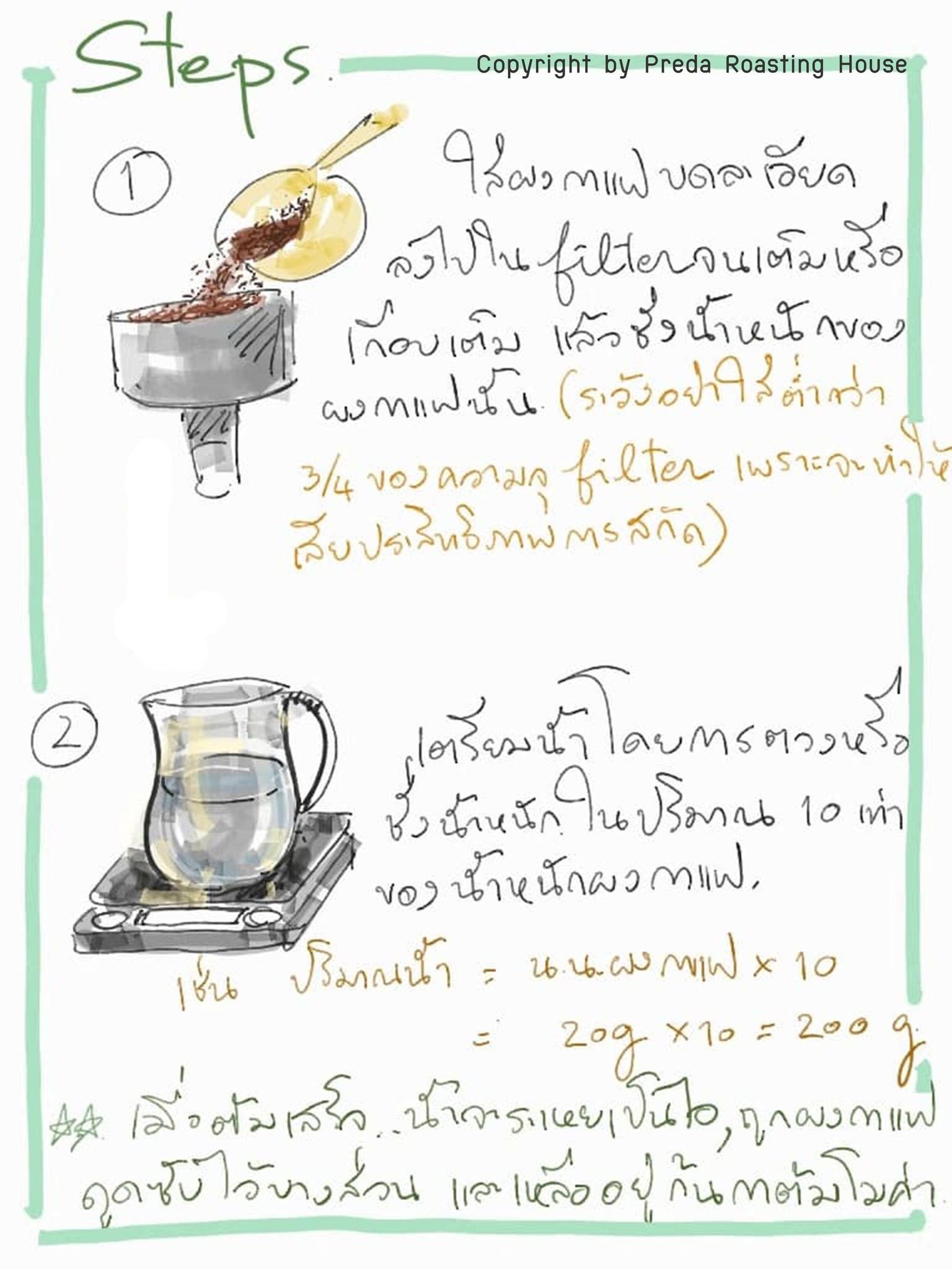 เมื่อ 2 ปีก่อน ปรีดานำเสนอ ‘สูตรดริปหลังโรงคั่ว’ เพื่อเป็นแนวทางในการดริปแบบง่ายแต่เวิร์คให้แก่ลูกค้าและลูกเพจผู้สนใจทั่วไป
