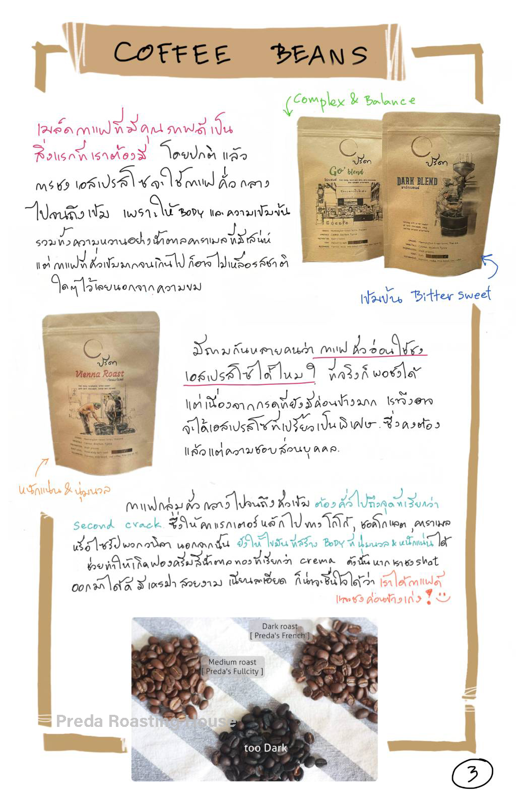 สูตรนี้เราใช้กาแฟคั่วกลางค่อนข้างเข้ม เพราะเลือกอร่อยได้ทั้งแบบกาแฟดำ และแบบใส่นม แต่ก็สามารถใช้กับกาแฟคั่วระดับอื่นๆได้เช่นกัน