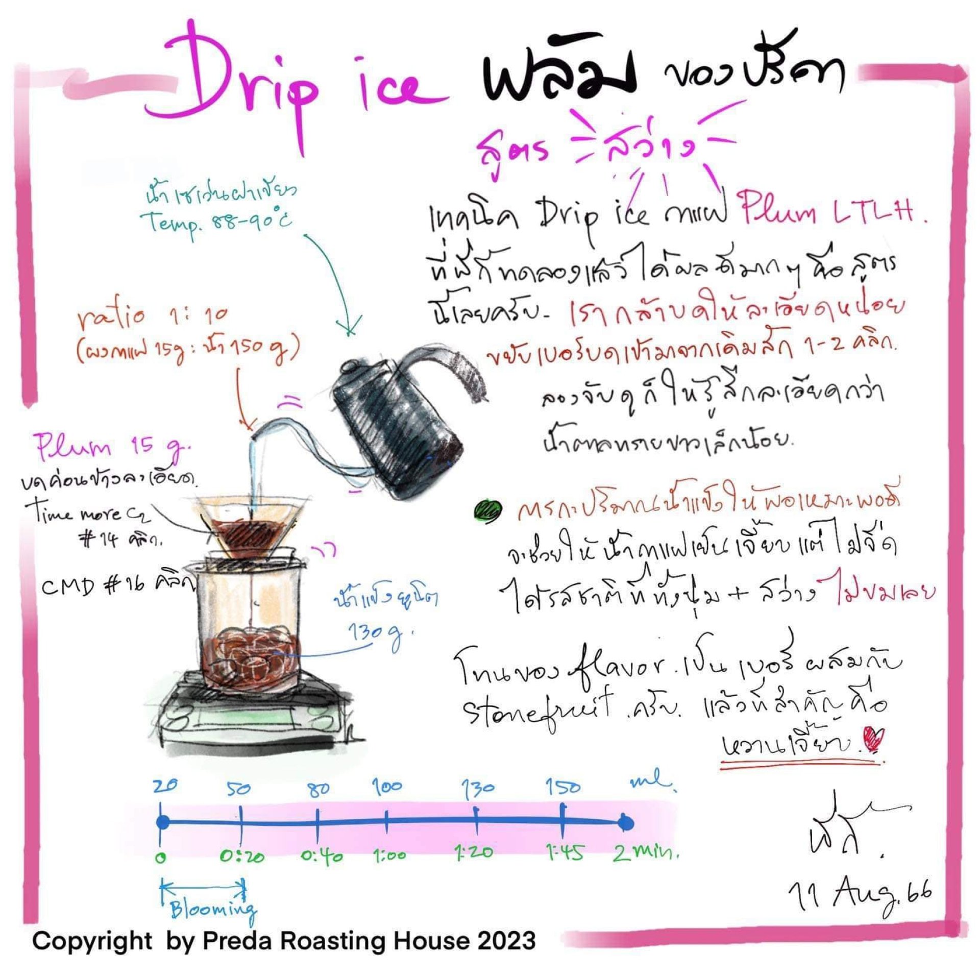 พอดริปเสร็จน้ำแข็งจะละลายเข้ากับน้ำกาแฟประมาณ90% ได้น้ำกาแฟพลัมที่ระดับความเข้มใกล้เคียงกับการดริปร้อนทั่วไปเลย แต่เย็นเจี๊ยบ